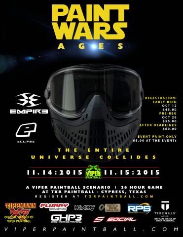 Paint Wars Nov 14, 2015 to Nov 15, 2015 TXR Paintball Join the Archangels as we fight for "Sypro" and the Empire against the Rebel scum, led by "King Spam"! Registration Attendees: Dan "Mayhem" Tecson Roland "VooDoo" Rosales Dillon "Rabbit" Tecson Sal "Cerberus" Alcaraz Marcus "10k" Lovito Isaac "Taps" Gonzales Emile "Snax" Payne David "Flaco" Cruz Scott "Jango" Jarquin NJ "King Klotz" Patel Rene "Hina" Ortiz Matt "Chaos" McCain Jason "Hypnos" Tesch Matthew "Saloon" Bilke Eli "Apollo" Lledo Del Ray "Venom" Cross Hector Maldonado Philip "Walker" Wyatt