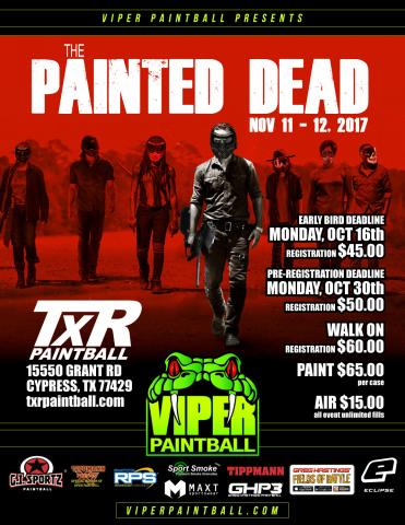 The Painted Dead Nov 11, 2017 to Nov 13, 2017 TXR Paintball Registration Awards: XO ("Mayhem")Sportsmanship ("Mayhem") Attendees: Dan "Mayhem" Tecson Dave "Tex" Tecson Roland "VooDoo" Rosales David "Buddha" Gonzales Marcus "10k" Lovito Ashley "Raven" Villarreal Dino "Littlefoot" Cortez Emile "Snax" Payne Leo "Ghost" Pineda Santiago "Pyro" Cortez Dillon "Rabbit" Tecson Isaac "Taps" Gonzales Sal "Cerberus" Alcaraz Chris "Havoc" Villarreal Scott "Jango" Jarquin Ken "Doc" Benedict Cooper "Stitch" Benedict Matt "Chaos" McCain Blake "Badfish" Simon Laurie "Maz" Jarquin Eli "Apollo" Lledo Brehonna "HarleyQ" Moore Rene "Hina" Ortiz Jason "Hypnos" Tesch Matthew "Saloon" Bilke Del Ray "Venom" Cross Kristie "Shadowcat" Wendt
